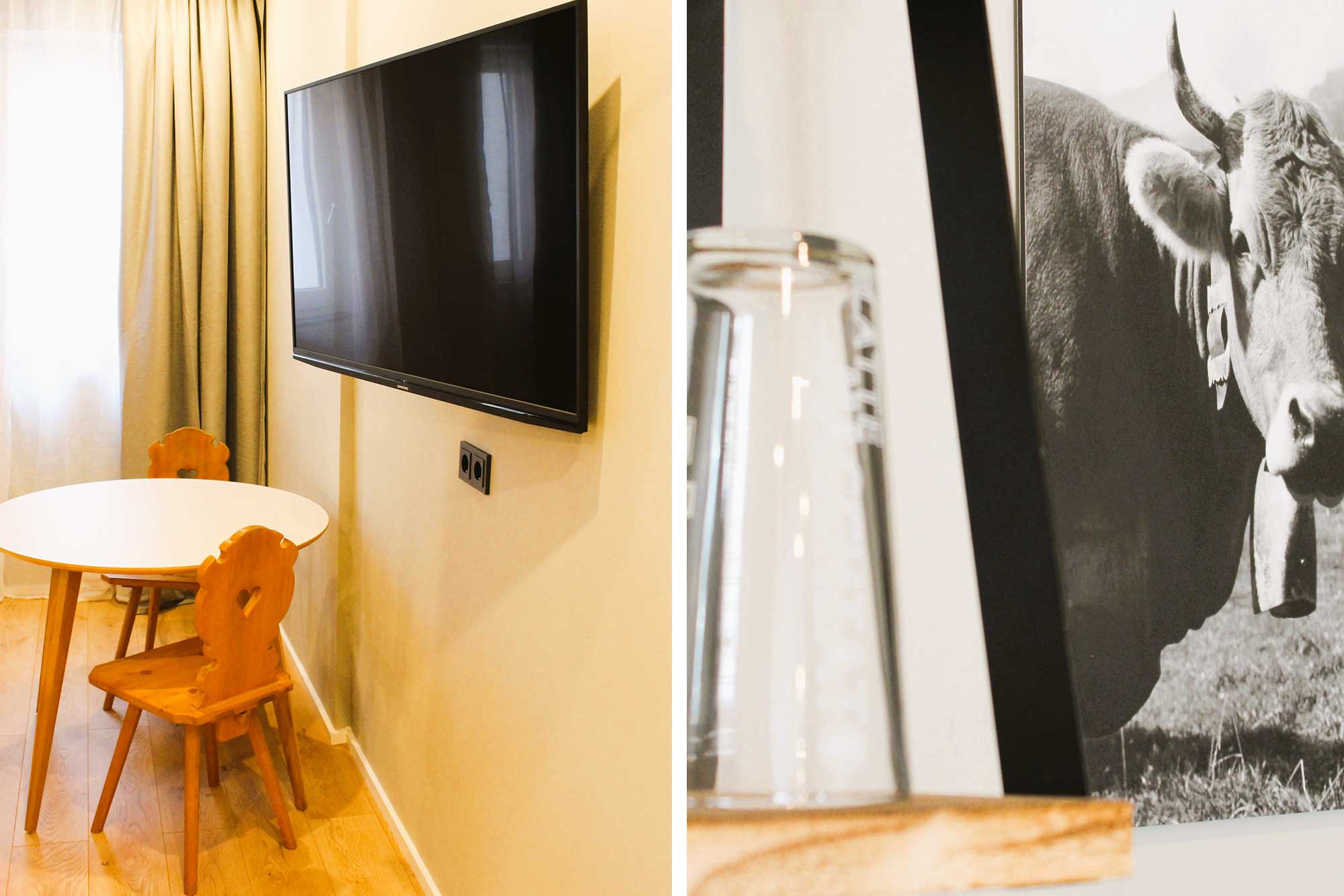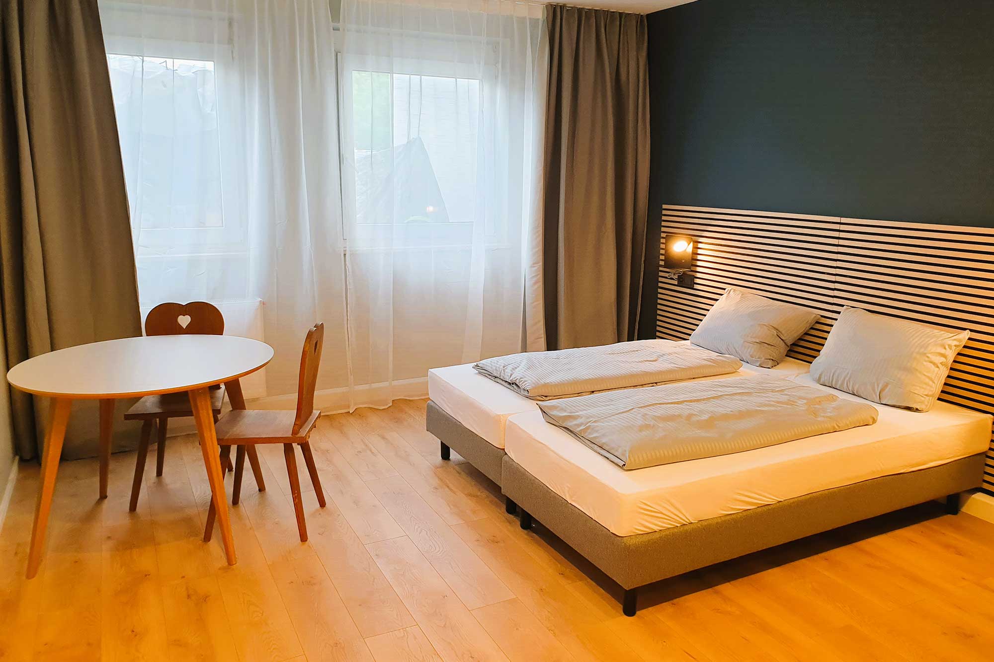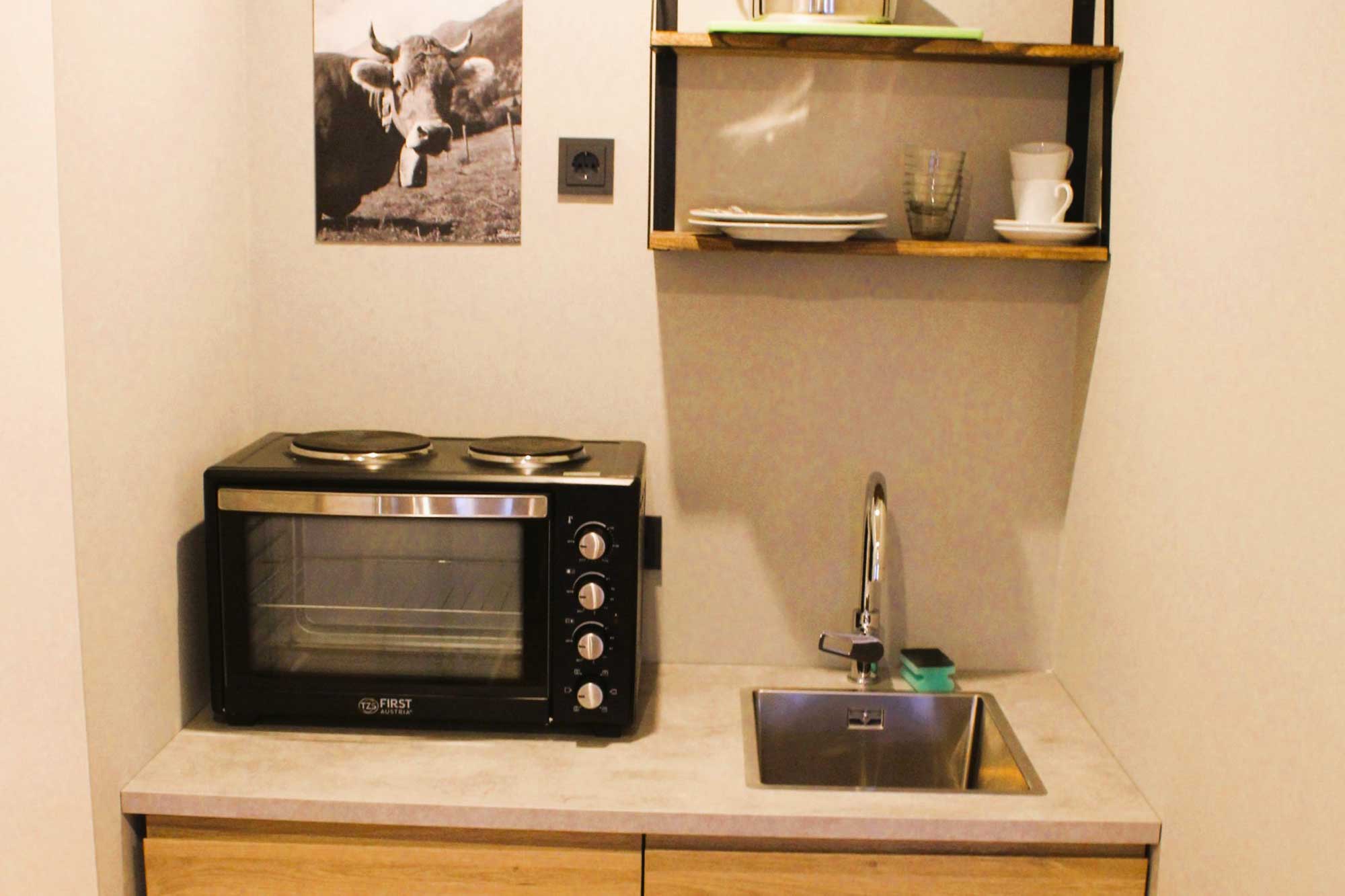 Jede Wohneinheit ist funktional und modern eingerichtet und verfügt über einen Esstisch, einen Kleiderschrank, einen Flachbild-TV sowie ein modernes Badezimmer. Handtücher und Bettwäsche sind selbstverständlich inklusive. Zusätzlich steht Ihnen eine praktische Mini-Küche mit Kühlschrank zur Verfügung – perfekt für Selbstversorger, längere Aufenthalte oder einen entspannten Ferienaufenthalt.